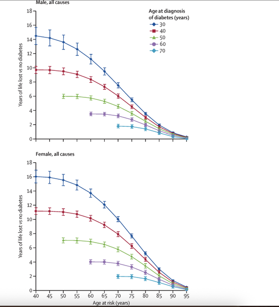 Ważne doniesienie dotyczące przeżywalności osób z cukrzycą w zależności od wieku zachorowania: